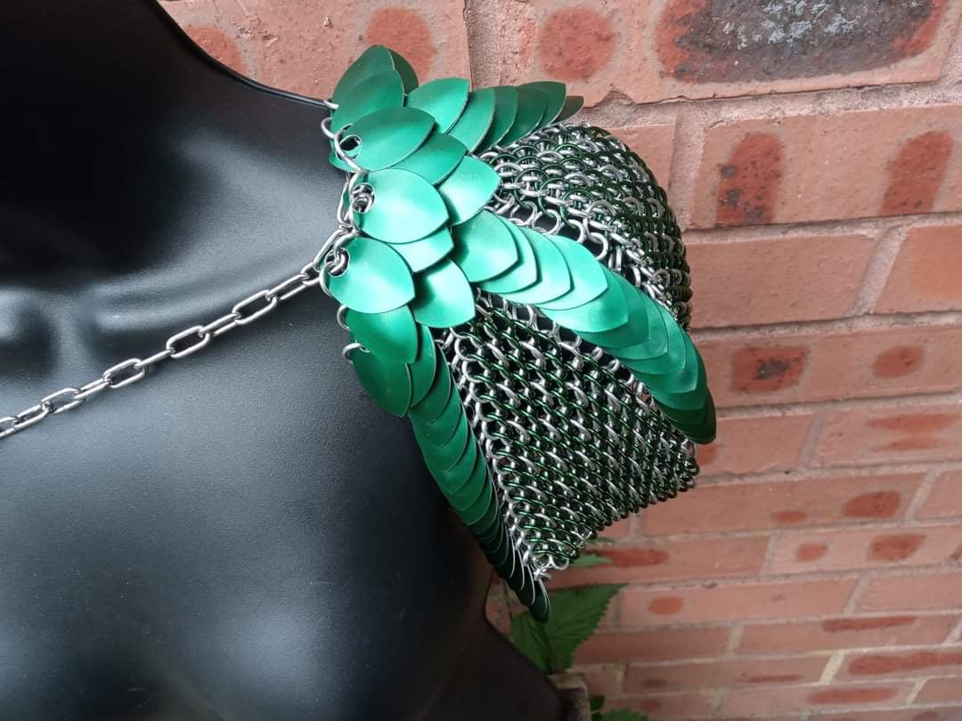 Don the hide of a dragon with this fabulous shoulder piece. Can be made in any colour combination, just message me at @scarlett_blades_chainmail on Instagram or email at [email protected].